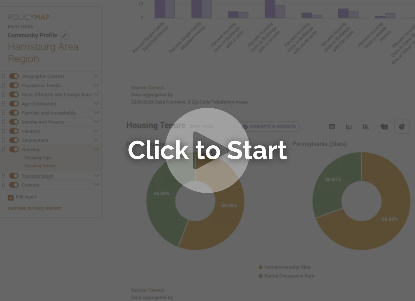 Thank you for joining the third session in our PolicyMap Office Hours webinar series! In this session, Brian Blacker, Senior Director of Product and Client Solutions, walks through PolicyMap’s new Community Profile report.